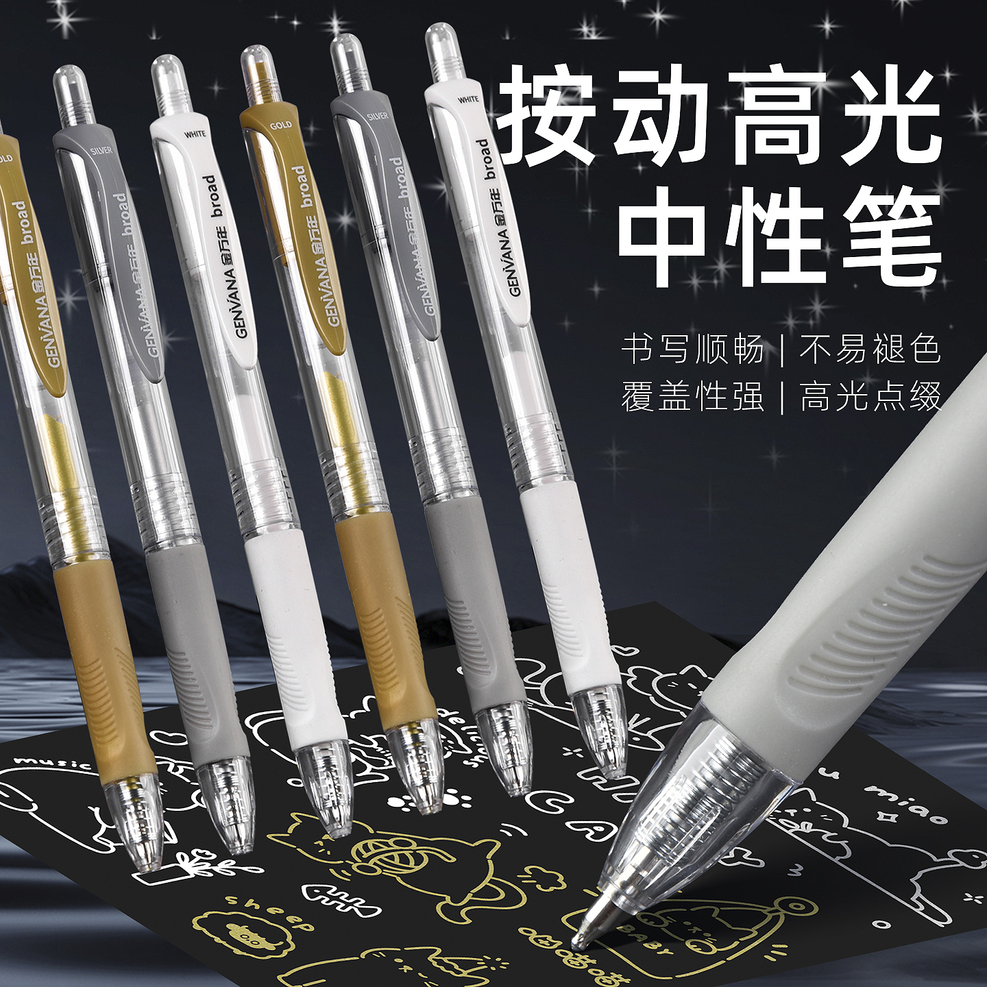 手绘高光1.0子弹配RS09按动中性笔